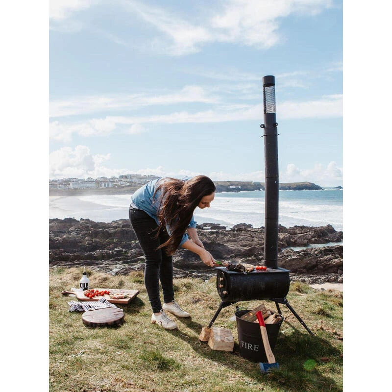 Notre nouveau modèle du réputé poêle portable et pliable pour être utilisé dans une tente ou sous une bâche. Idéal aussi comme appareil de cuisson extérieur. Livré avec cheminée et trappe de collecte